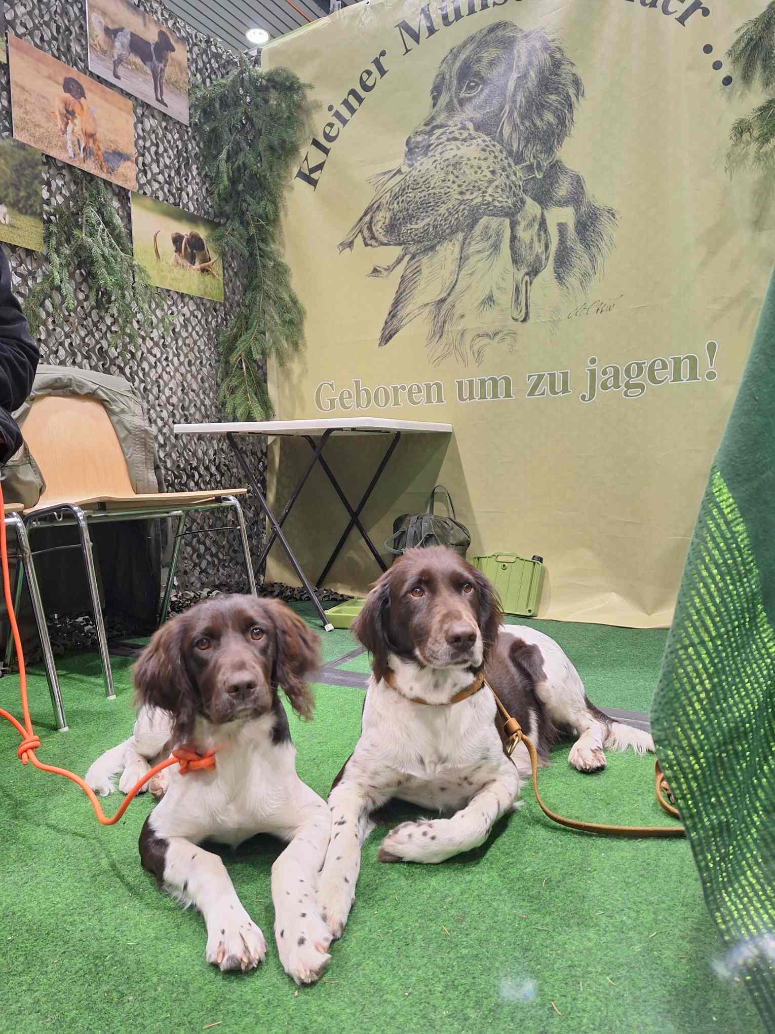 Flinte hat mit fünf Monaten ganz entspannt mit ihrer Mutter Aska den Stand unserer Landesgruppe auf der Outdoormesse in Neumünster betreut.